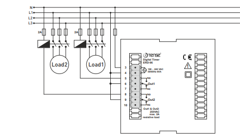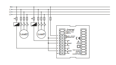 Cyclic time + ON-DELAY relay LED display for panel/door mounting 230VAC - Flashing at the start of the pulse, flashing at the start of the cyclic relay pause, time switch with delay. TESA ERD-96 ERD-48, ERD-72