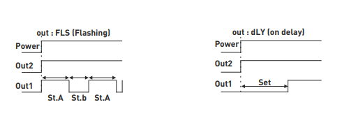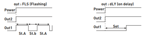 Time relay with two functions: a delay-on function and a cyclic relay function.