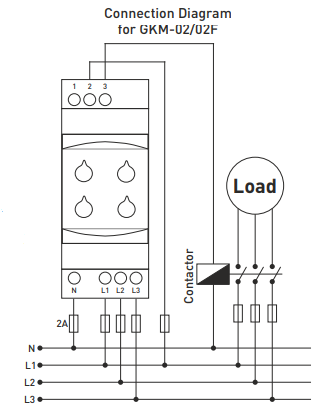 Relè trifase di monitoraggio/protezione per il controllo di sovratensione, sottotensione, sequenza, mancanza di fase con timer. GKM-02/02F (ECCITATO)
